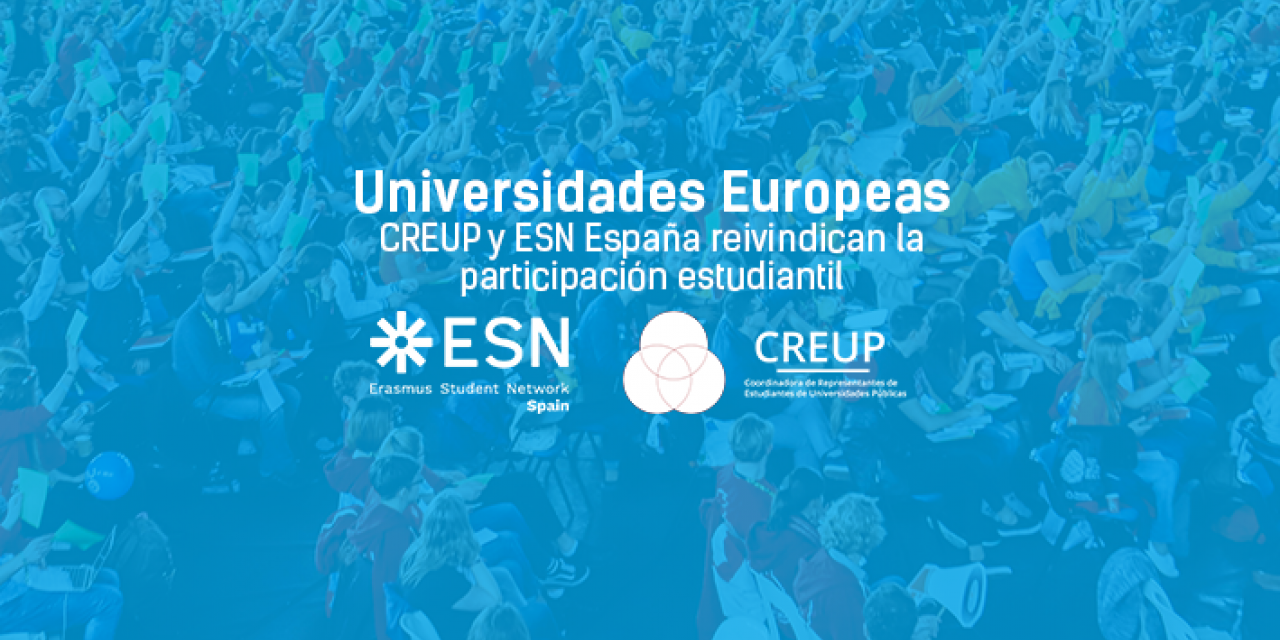 La Coordinadora de Representantes de Universidades Públicas (CREUP) y Erasmus Student Network España (ESN España) han publicado un informe de cara a la nueva convocatoria de Universidades Europeas, en el que alientan a las Universidades españolas que formen parte de estas alianzas a que pongan la participación estudiantil y la involucración del estudiantado organizado en el centro de sus estrategias.
